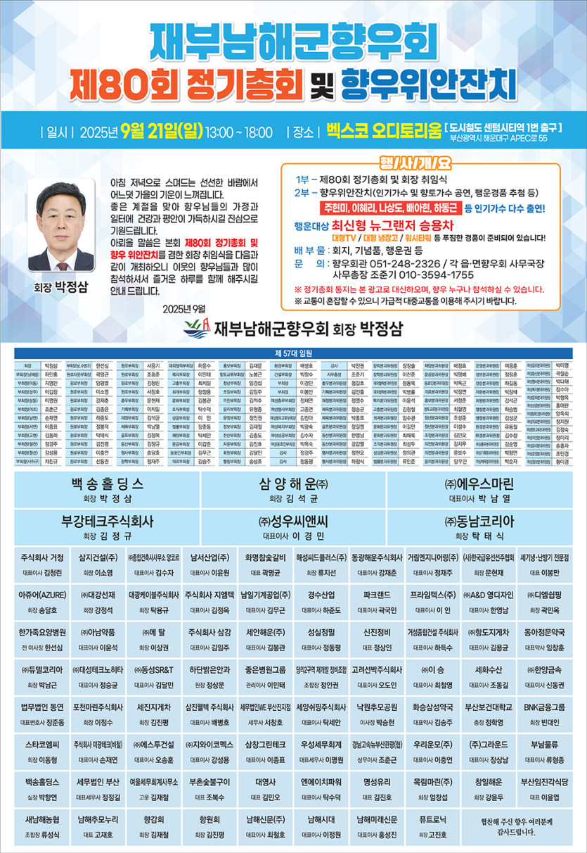 재부남해군향우회에서 알려드립니다.