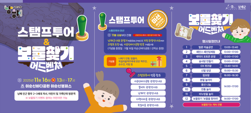남해 스탬프투어 & 보물찾기 어드벤처 홍보 안내 입니다