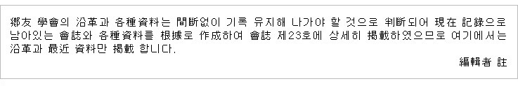 | 1985.05.28. | 향우회 회장단회의(감사포함)를 개회하고 향우장학회 재단법인 설립에 필요한 기금 50,000,000원에 대한 부족액 1,900,000원을 회장 최현도가 보충키로 함. |